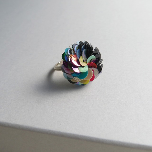 "ART" 絵を描くように 配色にこだわったシリーズ 色が色を侵食するような、アシンメトリーのデザイン。 身に着けやすい小振りなモチーフです。 様々なコーディネートをお楽しみいただけます。 発送の際は、オリジナルの箱にお入れします。 <ギフトラッピング無料> ご希望の方はオプションにてリボンのカラーをお選びください。 イエロー/ピンク/ブルー <サイズ> スパンコール部分:直径約2.0㎝ リングサイズ:フリー(お届け時は約10号) <素材> スパンコール 樹脂パール グラスビーズ レース糸 真鍮 ※スパンコールは角度により色合いが変わります。 ※マルチカラー部分は個体差がございます。 ※着用画像はイメージです。