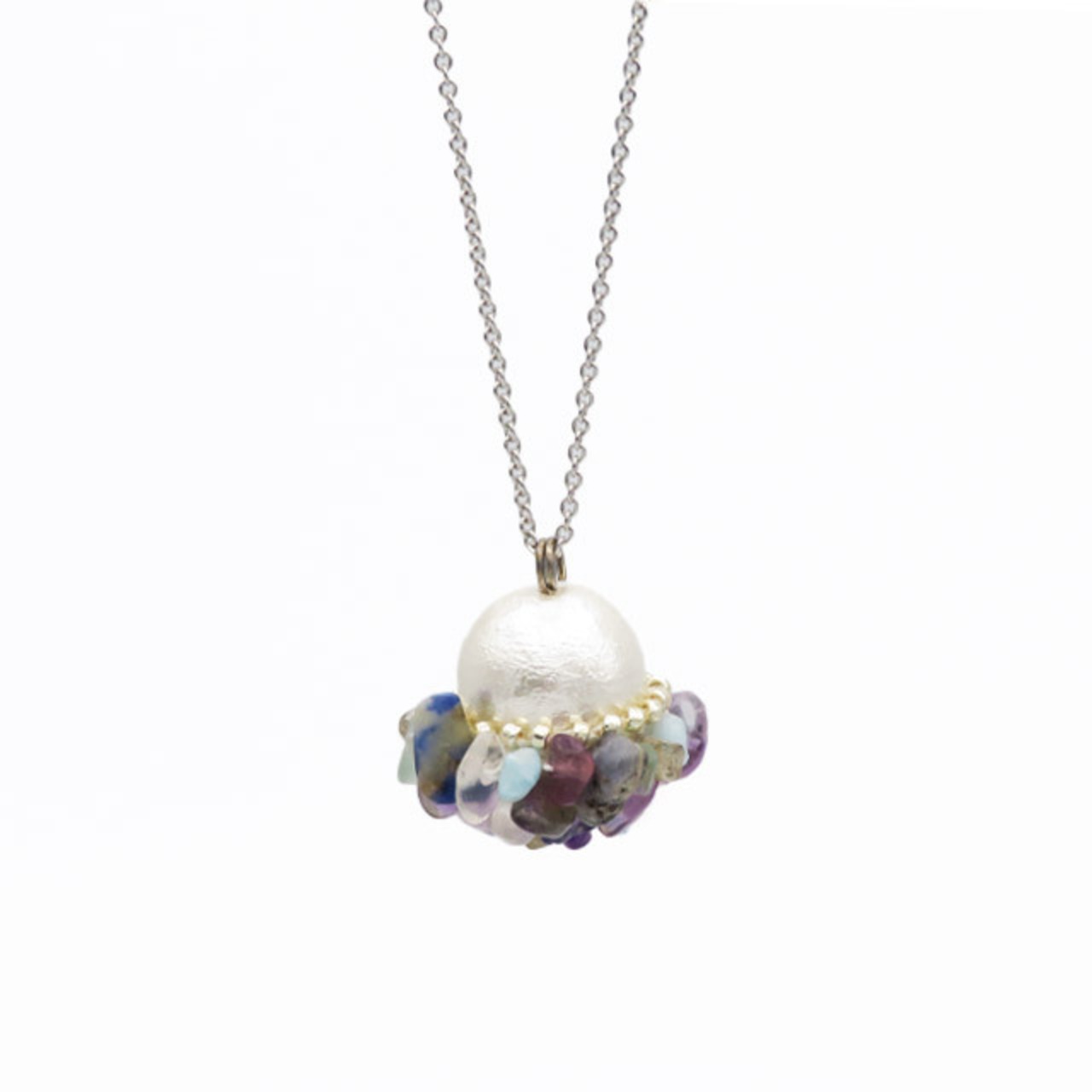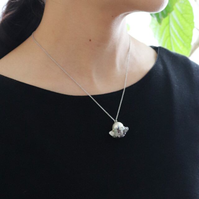 華奢なチェーンにコロンと揺れる印象的なパーツ。