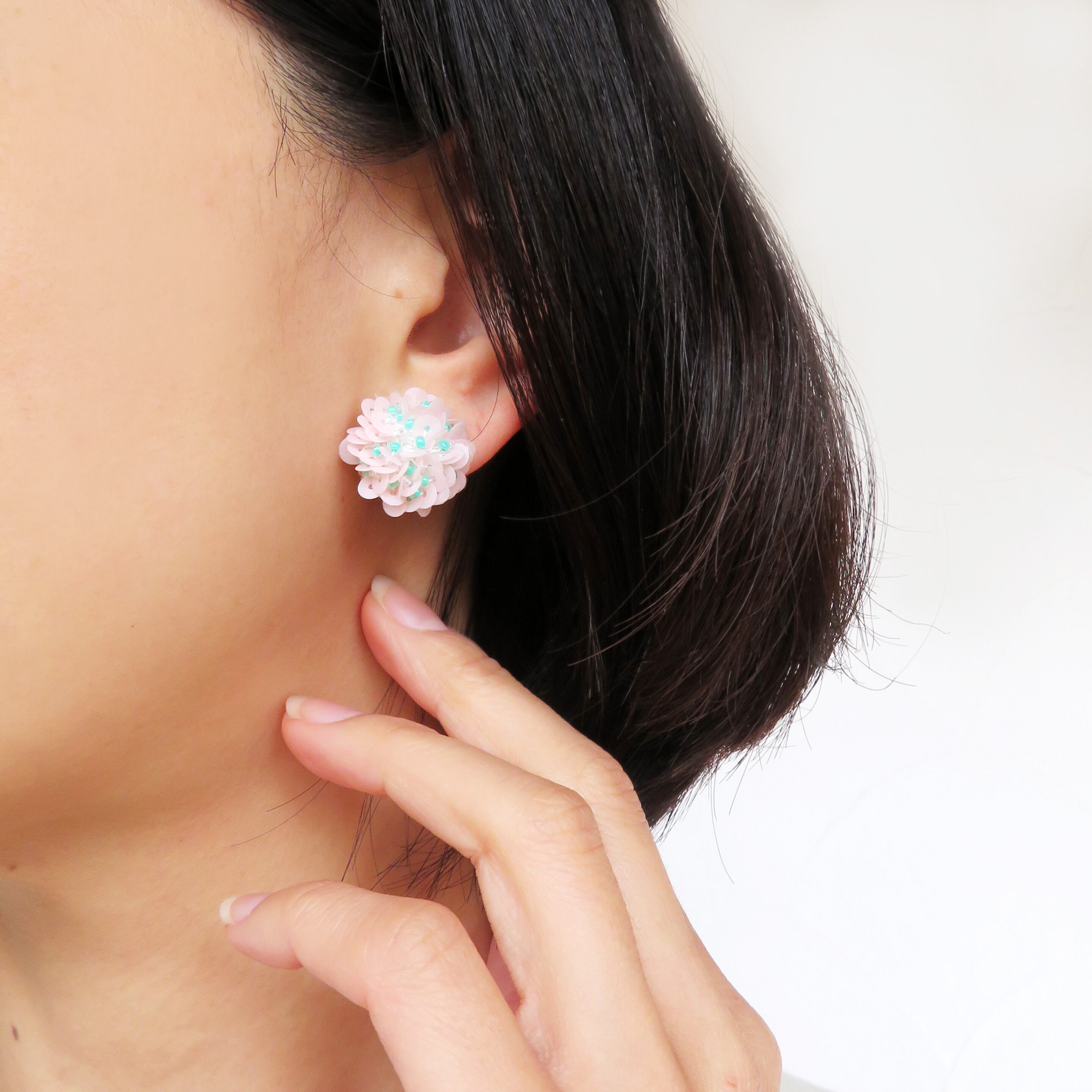 Frill sequins earring / pink