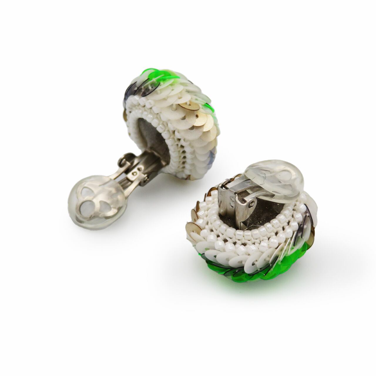 ART sequins ear clips square イヤリング/ green